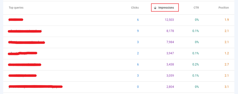 4th Step: Press the Impression icon so that you will get the high-impression keywords.