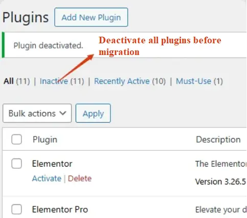 Before you start moving your website, it’s a smart move to turn off all your plugins to steer clear of any hiccups.