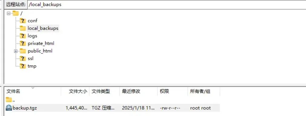 Successfully connect, find the local_backups, and download it to your local computer.